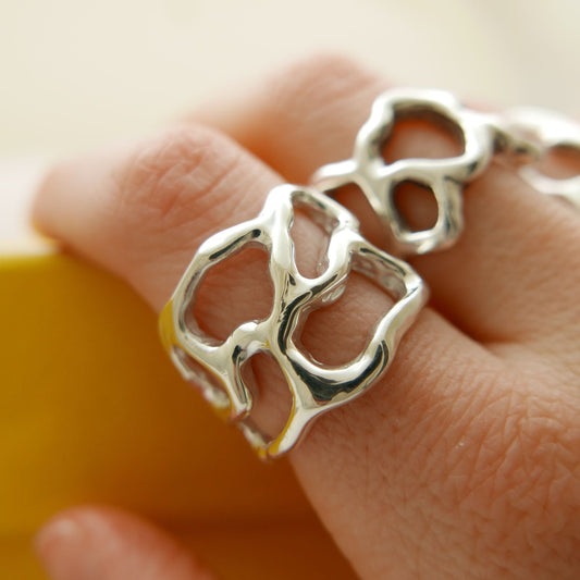 Fusion 8 is a timeless sterling silver ring, inspired by fire and fusion shapes.