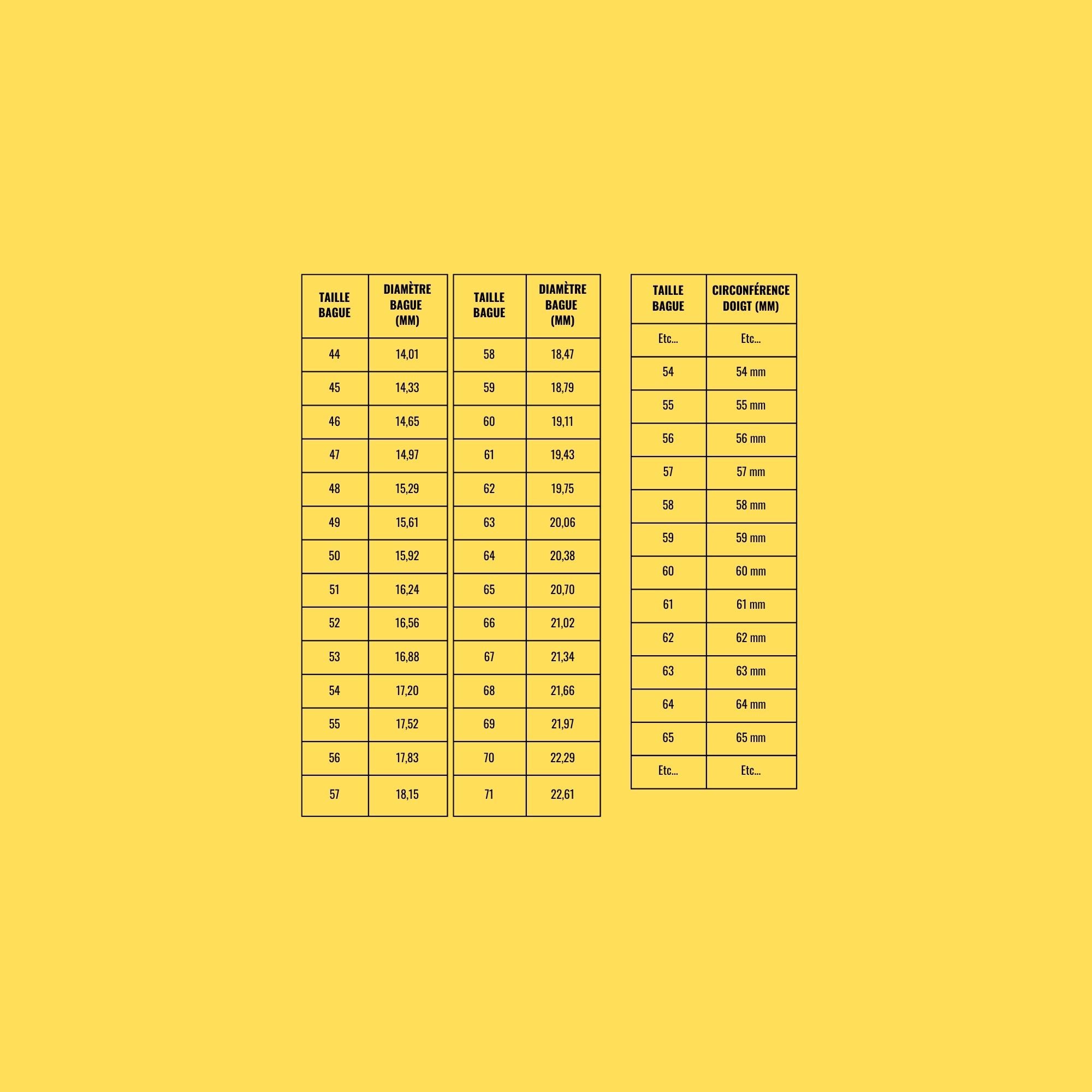 La meilleure méthode de mesure est d'utiliser un baguier, que vous pouvez trouver dans les bijouteries ou en ligne.